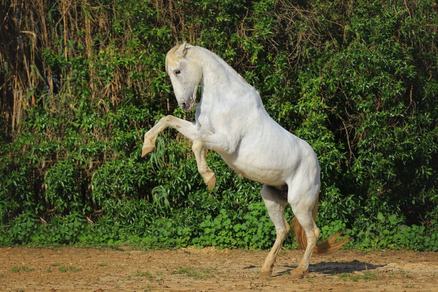 Dafür stehen ausgewählte Pferde zur Verfügung: zum Beispiel der P.R.E.- Hengst Gregorio und jede Menge Andalusierinnen. Die Pferde leben in artgerechter Offenstallhaltung und befinden sich in verschiedenen Ausbildungsphasen. So sind auch gute bis hervorragende Reiter/innen mit Sicherheit gefordert.